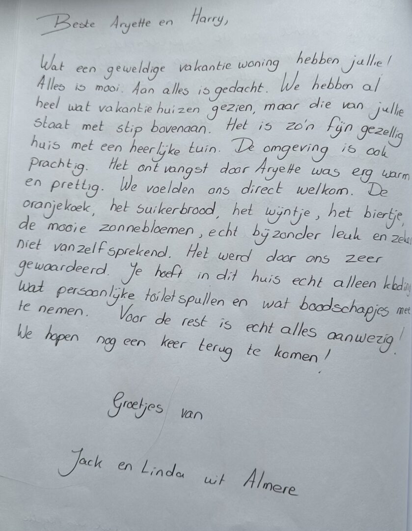 Hier delen we graag de ervaringen en verhalen van onze gasten. Het is een plek waar je kunt ontdekken wat anderen hebben beleefd tijdens hun verblijf in onze vakantiewoning.